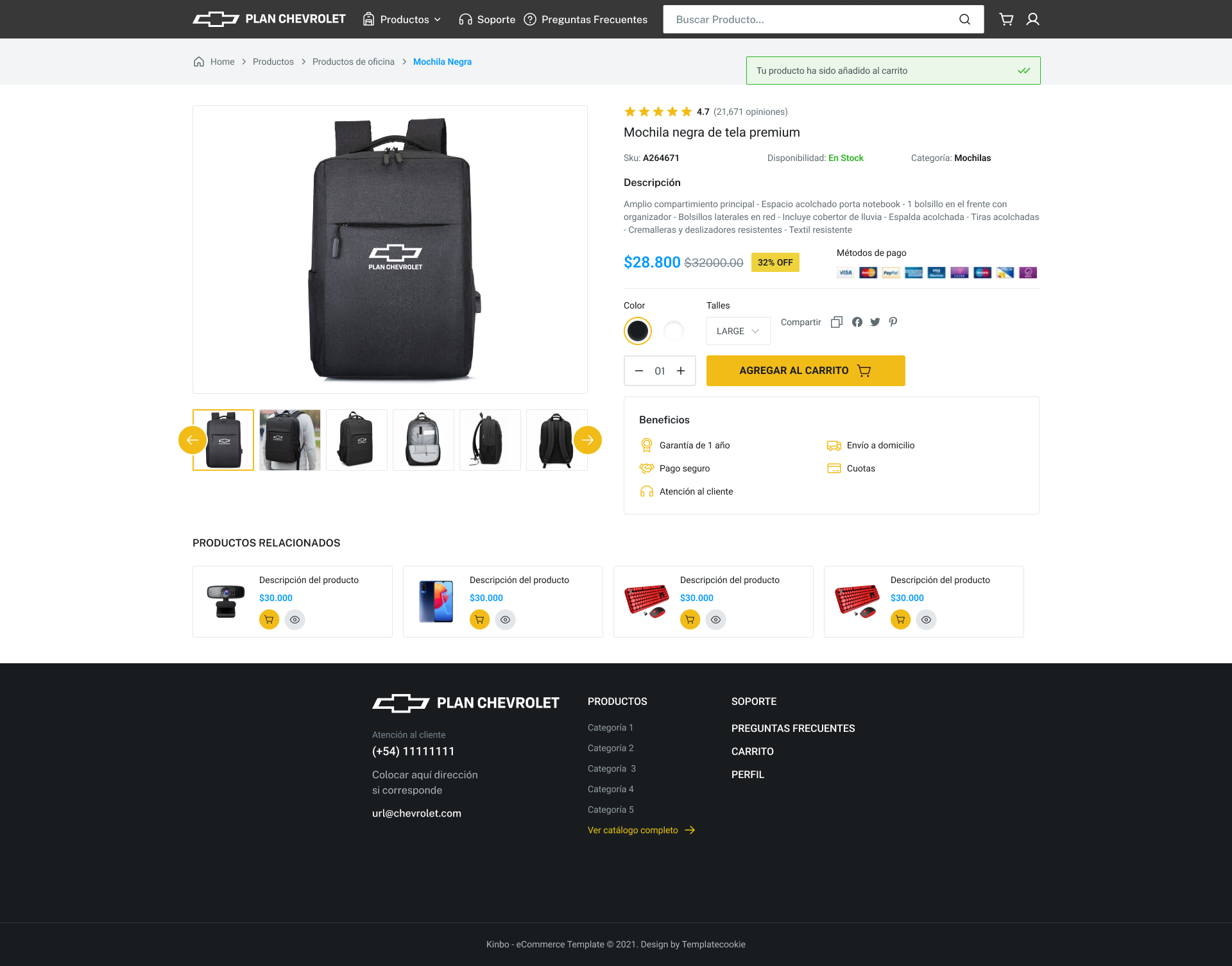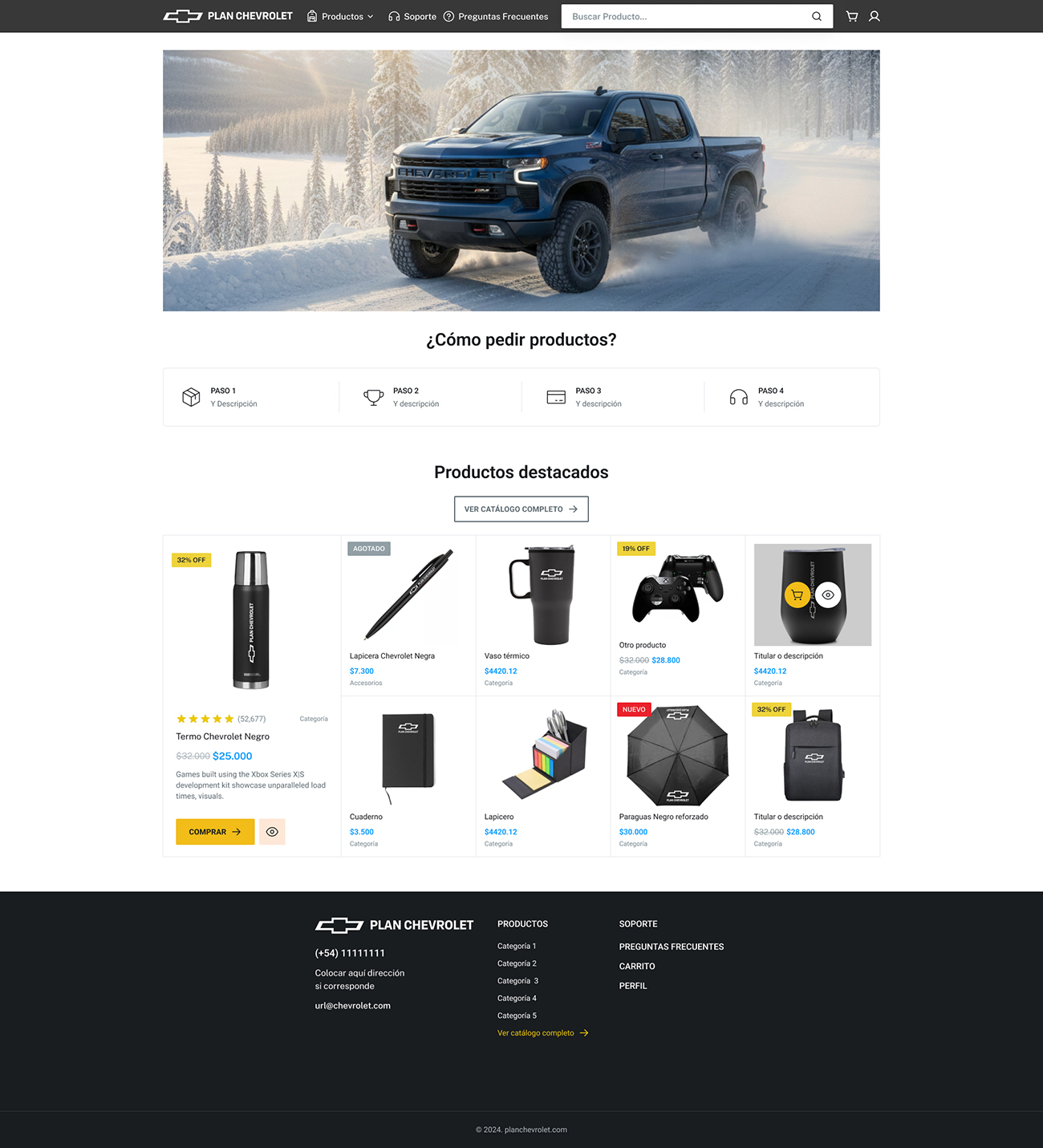 Chevrolet Argentina sought to centralize its internal branding by launching a dedicated marketplace for employees and partners. The project required a curated catalog of corporate merchandise, from technical gear to premium stationery, that met the company’s high standards of quality and design.