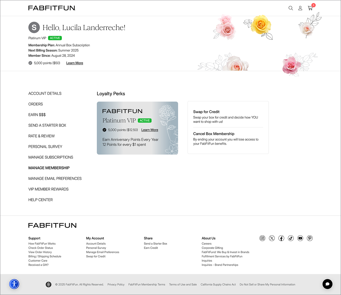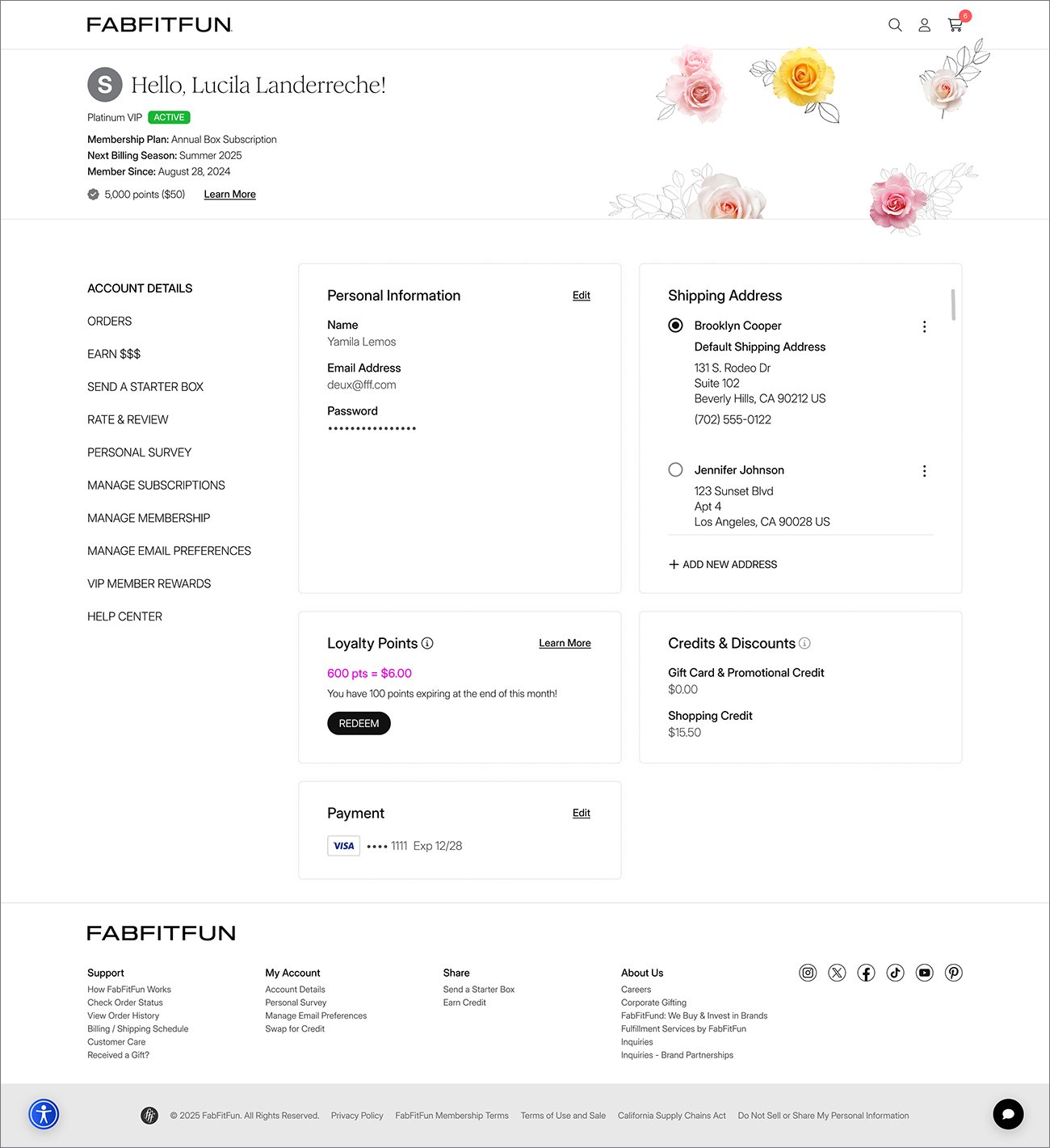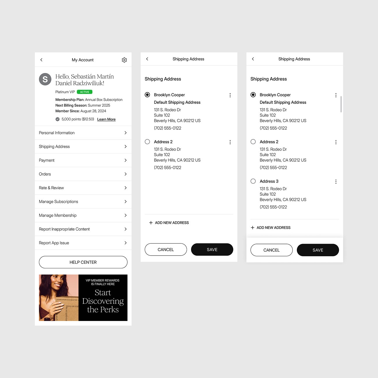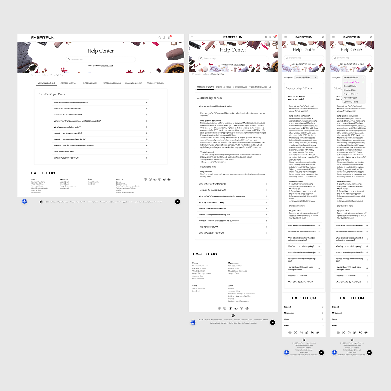 To elevate the experience for FabFitFun 2.0, we led the complete redesign of the My Account section. Beyond aligning the interface with the new Design System, the focus was on improving usability through a refined navigation structure and a more accessible, readable, and inclusive experience.